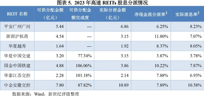 从分红来看,浙商沪杭甬REIT和国金中国铁建REIT的净现金流分派率超过了10%。华夏中国交建REIT由于货运恢复较慢,可供分配金额不及预期,因此净现金流分派率较低,仅为3.87%,实际派息率为3.78%。中金安徽交控REIT受周围路网分流影响,指标完成度偏低,净现金流分派率7.89%,但其年初股价处于低位,全年的实际派息率反而最高,达到10.38%。
