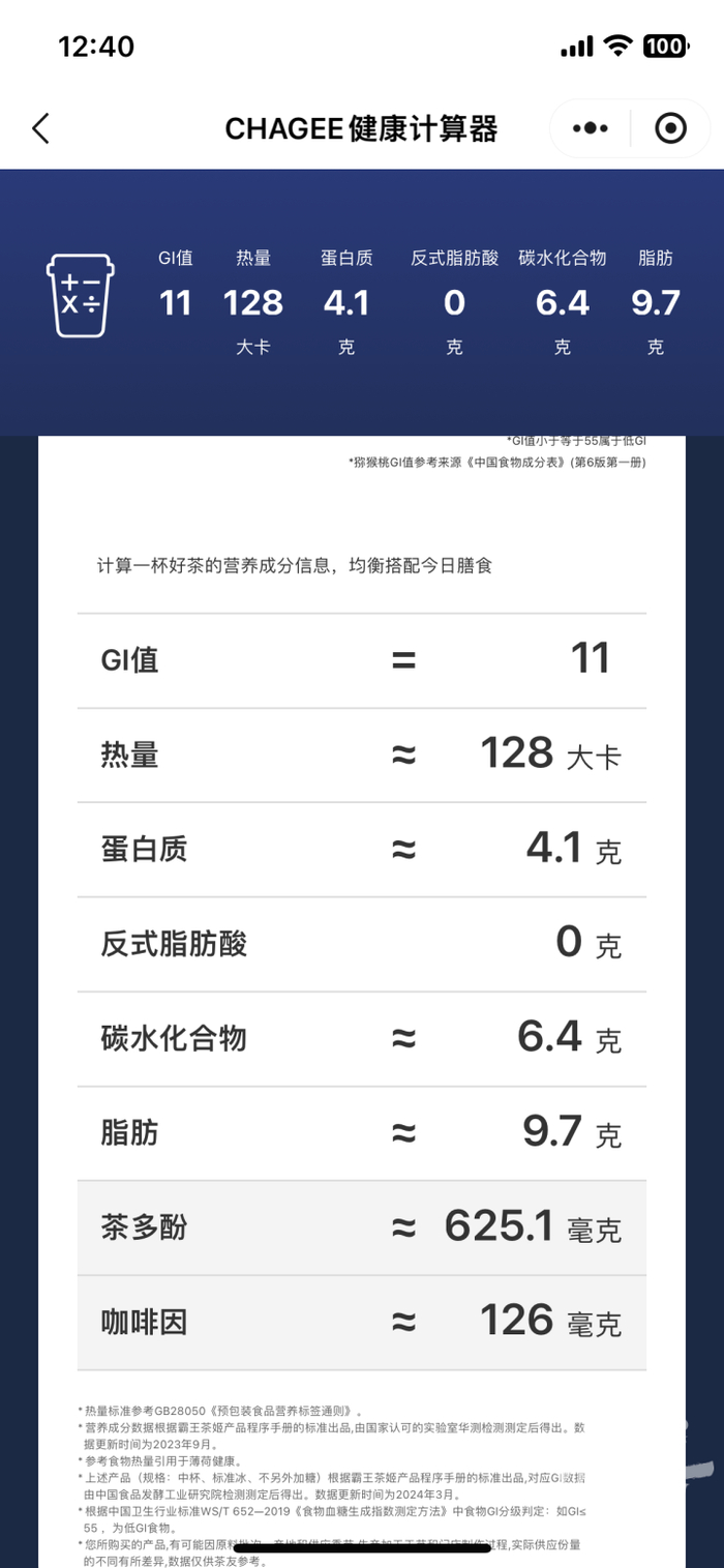 从小程序上搜索该款大杯茶多酚含量约625.1毫克,咖啡因含量约126毫克(相当于一半浓缩咖啡的咖啡因含量)。