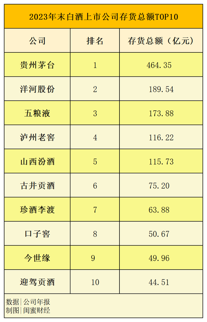 具体来看2023年末上市白酒企业中,存货总额排名前10位的公司。