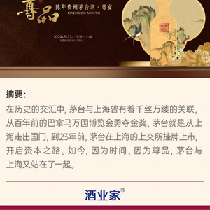 茅台与上海,一个在“长江头”,一个在“长江尾”。在历史的交汇中,茅台与上海曾有着千丝万缕的关联,从百年前的巴拿马万国博览会勇夺金奖,茅台就是从上海走出国门,到23年前,茅台在上海的上交所挂牌上市,开启资本之路。如今,因为时间、因为尊品,茅台与上海又站在了一起。