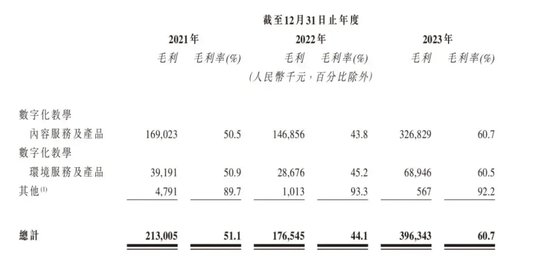 并且,在2022年,数字化教学内容服务及产品业务的营业成本同比增长14%的情况下,该业务创造的营收规模仅同比增长0.3%,而这也直接导致该业务的毛利率出现大幅下滑,由2021年50.5%下降至43.8%。