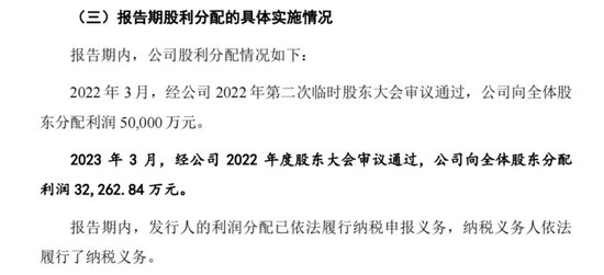 招股书显示,2022年3月和2023年3月,经公司股东大会审议通过,公司向全体股东分配利润5亿元和3.2亿元。按照利润宣告及发放年度,马可波罗的分红发生在2022年至2023年。按照分配的利润归属年度,马可波罗的分红时间为2021年至2022年。