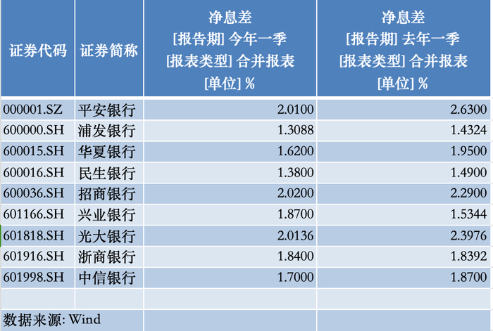 从国有大行情况看,六大行净息差同比全部下降,其中,工商银行下降近0.3个百分点。