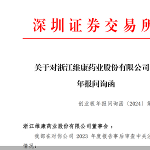 值得一提的是,2023年净利出现亏损的维康药业,未按深交所《创业板股票上市规则》的要求披露2023年度业绩预告。深交所也对公司信息披露工作是否真实、准确、完整、及时发出质疑。