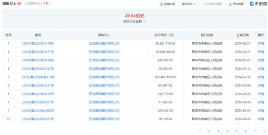 此外,2023年8月,上海票据交易所发布《截至2023年7月31日持续逾期名单》,2023年7月1日开始,巴龙集团持续逾期,累计逾期发生额为704万元,逾期余额为60万元。当月,巴龙国际服饰集团开始持续逾期,累计逾期发生额约为8126.56万元。