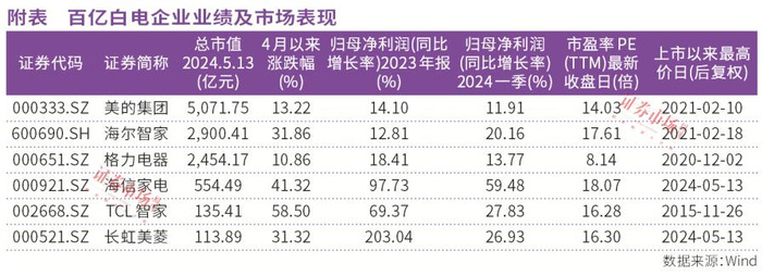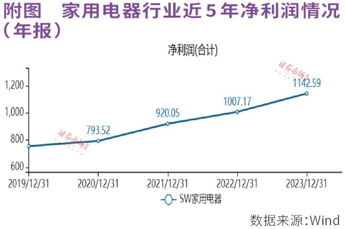 其认为,“特别是白电板块,预计在龙头追求利润水平、内销以旧换新政策推动、外销延续恢复态势、长期展望家电品牌出海下,业绩增长具有确定性,结合白电板块高分红且分红有持续提升趋势、估值处于较低水平下,长期配置价值凸显。 ”