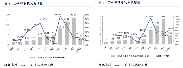 收入、利润保持较快增长。2014-2023年,公司营收从2.66亿大幅增长到26.93亿,复合增速达29.30%;归母净利润从0.38亿增长至3.68亿,复合增速达28.78%。2023年公司营收26.93亿元,同比增长15.75%,归母净利润3.68亿元,同比增长36.54%。