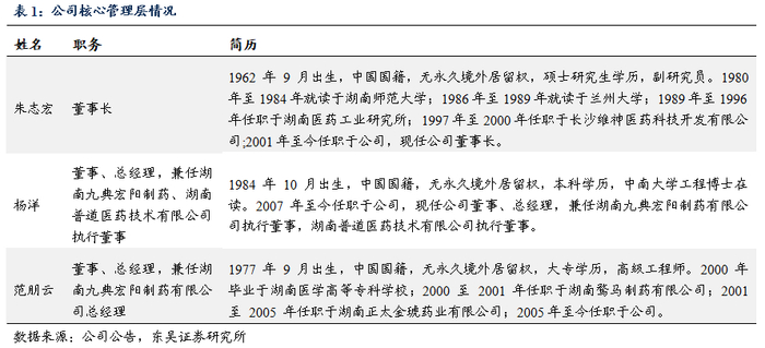 公司股权结构稳定。截至2024年一季报,公司董事长朱志宏个人持股比例34.04%,为公司实际控制人。朱志宏先生,拥有兰州大学硕士学位,在湖南医药工业研究所从事新药研发工作期间,积累了深厚的专业知识和研发经验。1996年,朱志宏先生创立医药科研公司,专注于新药和仿制药的研发,为湖南九典制药的成立奠定了基础。