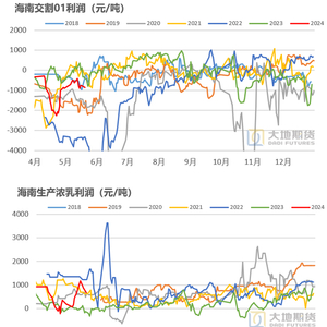 主要锚定云南定价相对合理。近几年海南主要生产浓乳,而全乳占少数,生产交割品的主力地区在云南,因此我们认为RU应该去锚定云南的价格更加合理。按照这个逻辑来看,今日收盘后下跌目前RU01价格为15800左右,接近云南胶水折算的RU01价格15500,属于相对合理,因为在开割前期会给出加工量利润,但在上量之后加工利润大概率开始季节性走低。