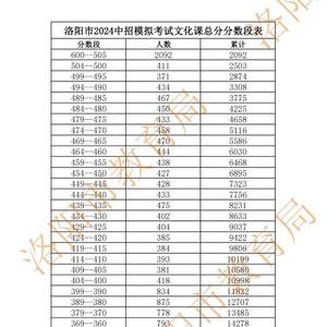 刚刚!洛阳2024年中招模拟考试分数段表出炉