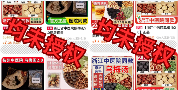近期,我院互联网医院部分代茶饮受到广泛关注,同时我院注意到,某些电商平台上出现了所谓“浙江省中医院同款乌梅汤2.0”“浙江省中医院同款养发茶”等打着我院旗号的仿冒产品。