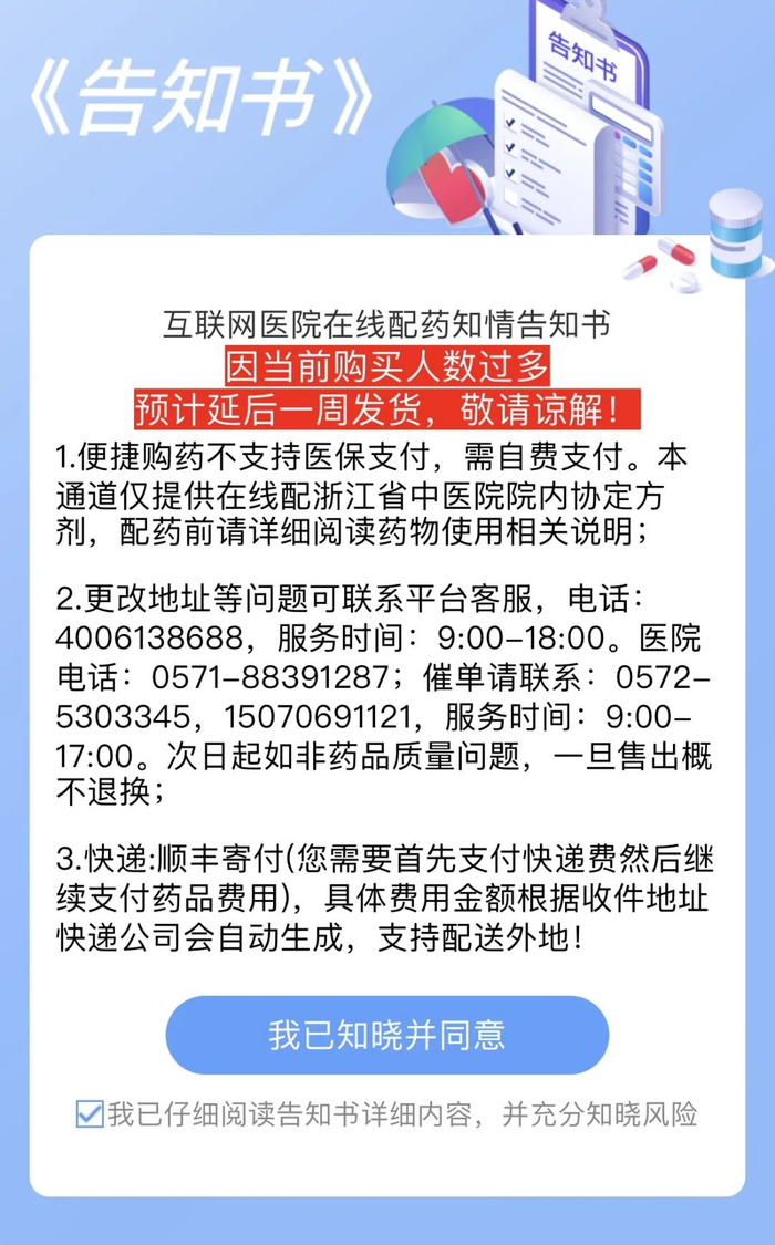 “生发套装”由于需求量巨大,其中有三味药材告急,发货时间预计要推迟一周。为了满足广大用户的需求,省中医院已联合药厂通过全国紧急调货的方式,努力补上这三味中药的库存。