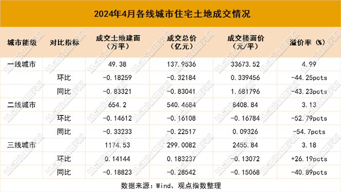 仅三线城市成交环比上升,前4月全国土地收入降一成