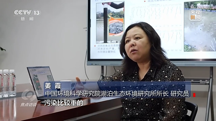 中国环境科学研究院湖泊生态环境研究所所长、研究员 姜霞:它的底泥像流状的,很稀。行船以后就扰起来了,植物扎不了根。在流态泥的情况下,有机质又比较高,我如何进行植物修复。
