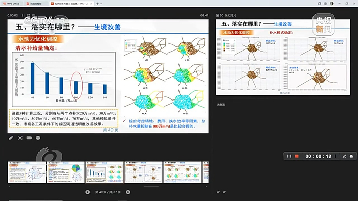 王荣昌教授用他们制作的基于大数据的水动力模型,展示了不同方案下,嘉兴整个城市水网在相应时间内的调水、换水场景。而南湖作为水网中心点,也是用这样的方式实现了水体的调度和转换。