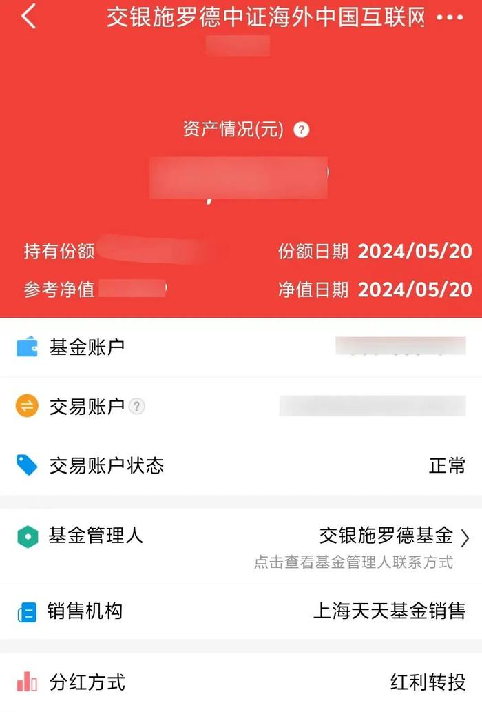 在这上面可以看到基金持有信息,还能看到在哪个平台买的、分红方式等。