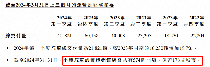 但“趣解商业”通过财报数据发现,在上述调整后,小鹏汽车今年一季度的实体销售网络门店从去年底的500间增加到574间,多了74间,但覆盖城市从181个减少到178个。