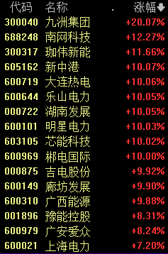 今天上午,电力产业链大爆发,掀起涨停潮,电力、虚拟电厂、电力物联网、绿色电力等板块涨幅居前,九洲集团、新中港、大连热电等个股涨停,龙头股长江电力上涨1.22%,股价再创历史新高。