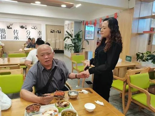 “现在年纪大了,做不动饭,每天在食堂吃顿饭,价格也不贵,吃得很舒服,孩子也放心。”82岁的陈英(化名)和老伴经常坐社区班车来西南街食堂就餐。