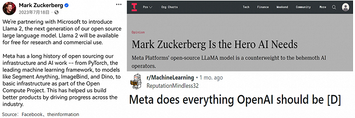 媒体们一反常态,将扎克伯格形容为“AI所需要的英雄”;网友们涌到他的帖子下留言,建议Meta更名为OpenAI。