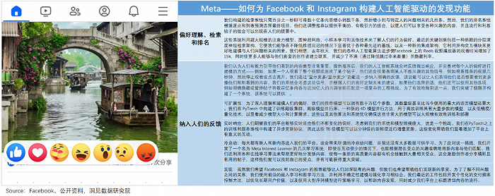 2023Q1电话会议提到:人工智能应用于Reels(Facebook和Ins上的短视频功能)以来,Ins的用户时长增加了24%以上。