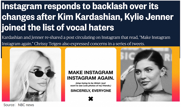 2022年中,金·卡戴珊、凯莉·詹纳(金小妹)配图黑白照片的吐槽,引爆了一场针对Meta的抗议活动。