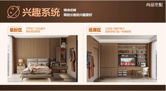 在情绪需求的满足上,尚品宅配设置了练舞、书法、音乐、户外运动、收藏品展示等N个兴趣专区,满足银发群体居家培养爱好兴趣的需求,让他们在家既能感受到身心上的舒适放松,又能收获更健康更有活力的生活方式。从身体上、心理上激发出银发群体年轻态乐享生活的需求,助力银发群体实现“越活越年轻”的愿望。