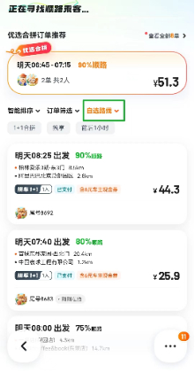 而在车主的顺路乘客列表中,可以看到乘客接受的具体拼车类型,添加感谢费金额、是否承担高速费、是否接受前后一小时出发、是否刚刚在线等,还可支持车主自主选择行驶路线,进而为车主推荐不同路线的不同顺路乘客,让更多顺路合乘成为可能。