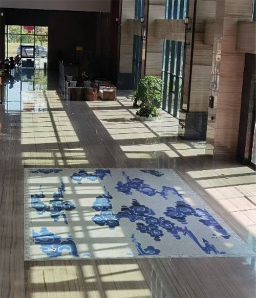 自此,欧阳琦大师带领团队开启了“炼泥为毯”的研发之路。经过多年的努力和无数次实验,最终他自主研发出以纳米技术为依托,兼具传统纤维地毯纹理和陶瓷物理质感的艺术瓷毯。欧阳琦大师在回忆瓷毯“诞生”的过程时说:“瓷毯不是织出来的,而是烧出来的。为了找到最合适的烧制材料,我曾经在一年间尝试了200多种材料。瓷毯看上去像地毯,摸上去有纤维质感,踩上去有地毯质感。瓷毯的问世,不仅引领了家居装饰新风向,还大大降低使用中的清理成本。”
