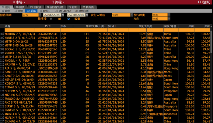 4. 亚洲美元债活跃交易(注:05/06/2024-05/20/2024,来源彭博FIT交易平台,MISA