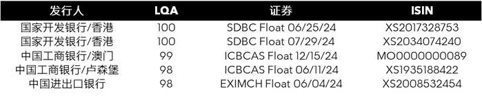 中资银行离岸美元债LQA评分最高的五支债券