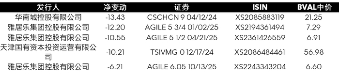 离岸美元债价格跌幅最大的五支债券