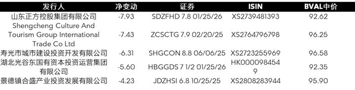 离岸人民币债价格跌幅最大的五支债券