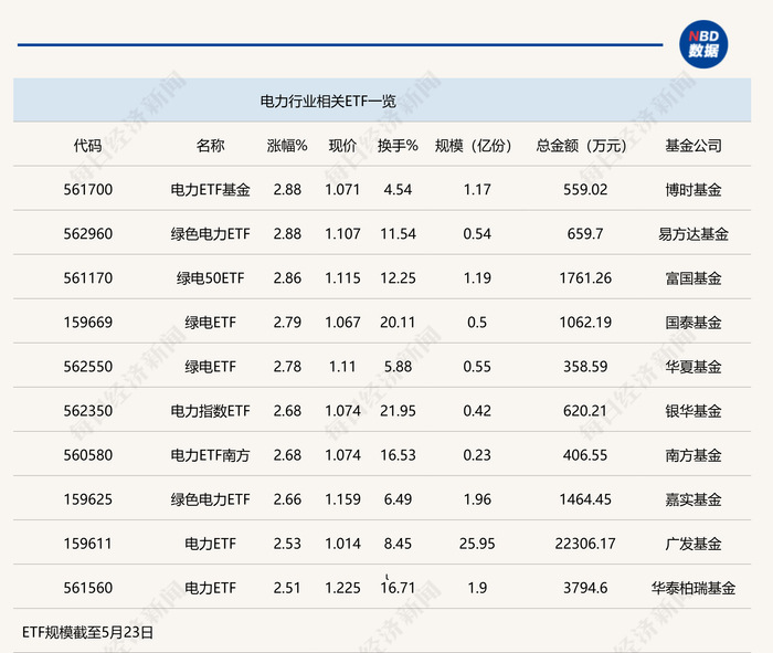 5月24日早盘,A股冲高回落,电力股逆势走强,掀起涨停潮,电力相关ETF也是领涨两市。