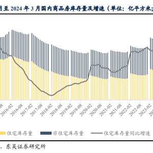 截至2024年3月31日,全国商品房库存量达7.48亿平方米,同比增长15.54%,创下历史新高,其中住宅库存量3.95亿平方米,接近2015年库存量水平,同比增长23.90%。而当下商品房库销比同样攀升至历史相对高位水平,提示国内房产的库存压力较高,亟待更多政策去支持存量房产的去化。
