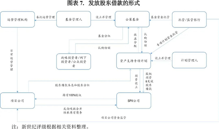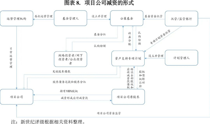 专项计划成立后向原始权益人京能国际、联合光伏收购项目公司全部股权,并向项目公司发放股东借款、向原始权益人支付股权对价款,该等股东借款用于偿还项目公司的存量融资债务及支付股东分红款;专项计划受让项目公司全部股权后作出股东决定,同意项目公司减资7亿元,但减资款不实际支付,从而形成应付减资款债务,该等债务与上述股东借款合计形成项目公司对专项计划的债务;上述动作完成后,本REIT组建完成符合资本弱化限制规定的1:2的股+债结构。