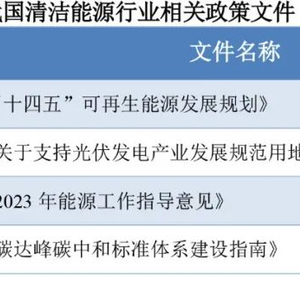 为了促进电力产业结构调整和可再生能源领域健康发展,近一年来我国出台了促进碳达峰、促进电力消纳、发展新能源等一系列方针政策,包括行业发展规划、用地政策、年度工作计划和标准体系框架等。
