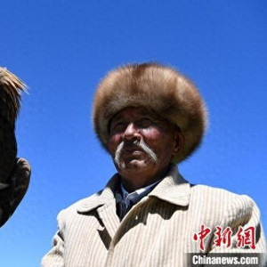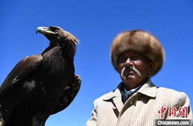 中新社乌鲁木齐5月23日电“小时候跟着家人上山时,偶尔会碰到小鹰就带回来,然后慢慢驯,给它喂食喂水,渐渐地小鹰也就习惯了我们的生活。驯化好后,我们就带鹰上山捕猎。”23日,谈起养鹰、驯鹰的故事,今年74岁的库尔马西·胡特曼依旧饶有兴趣。