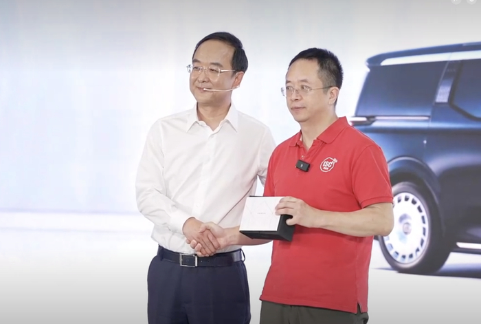 在22号晚间交车仪式快结束时,周鸿祎现场将车钥匙交给褚会长,表示自己是第一次摸这个车钥匙。褚会长回赠周鸿祎一个红色礼盒,称里面是迈巴赫的车模。并且,周鸿祎透露:“接下来,我打算发起一场‘冰桶挑战’,号召自己的企业家朋友们一起发挥带头作用,让更多企业家关注到国产新能源汽车。”