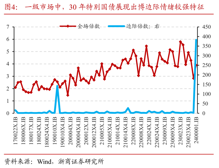 (1)以近期的30年特别国债2400001.IB一二级市场表现为例,由于特别国债品种关注度较高,一二级市场或存在套利机会。