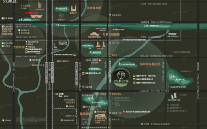 3、位置优势:项目位于城南高新区中和街道,直线3km范围内有59个幼儿园;13个小学,教育资源丰富。周边直线3km范围内有10个地铁站(陆肖、观东、新通大道、张家寺、天府五街、新川路、华府大道、天府三街、中和、四河),轨道交通发达,交通配套齐全。