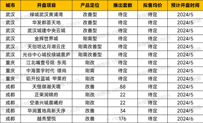 表:2024年5月-6月部分项目开盘信息