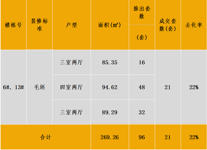 本次推出户型面积及开盘当天认购去化情况