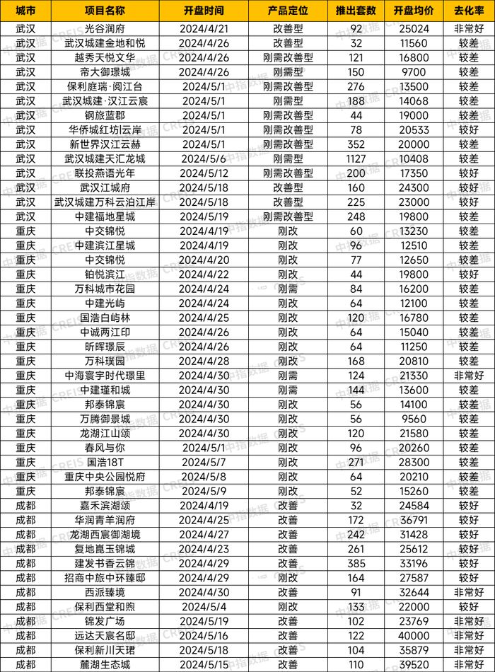中西部新开盘谍报:开盘数量较上月略减,整体去化效果较差