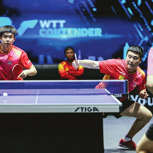 当天下午,在男双1/8决赛中,身穿红色战袍的王楚钦和梁靖崑,凭借实力率先拿下2局。在第三局的局点之战中,跨国组合钟子毅、朔伊尔将比分追至7平,此后“大头”和“大胖”快速反击,在王楚钦一记反手扣杀中,锁定3:0的胜局,仅用时19分25秒。中国组合“速战速决”,网友弹幕支持“大头”“光速下班”。值得一提的是,梁靖崑拿到“一日两胜”的战绩。