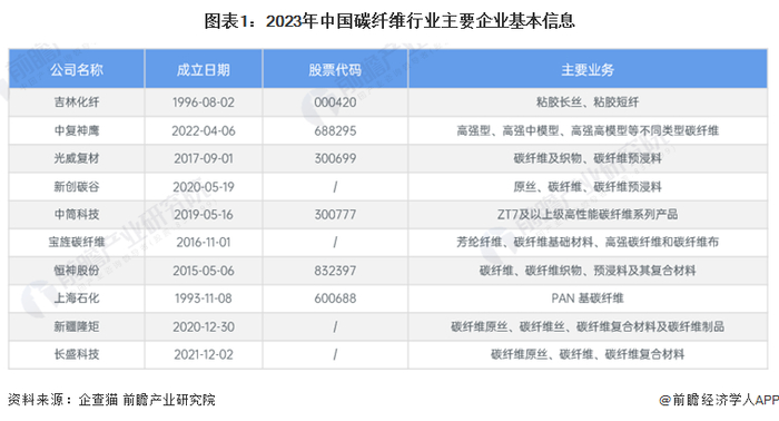 行业主要上市公司:中复神鹰(688295);光威复材(300699);金发科技(600143);吉林化纤(000420);江苏恒神(832397);中简科技(300777)等