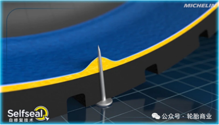 现如今,轮胎巨头们都已研发并应用自修补技术,例如:2021年8月,米其林在中国市场正式推出自修复轮胎(sefseal),将显著改善汽车轮胎因被刺扎而导致的胎压流失问题,从而满足消费者对安全舒适出行的需求、2021年5月大连固特异自密封轮胎生产线(一期工程)通过了竣工环境保护验收。这条生产线是一条密封轮胎生产线,年产50万条自密封轮胎。