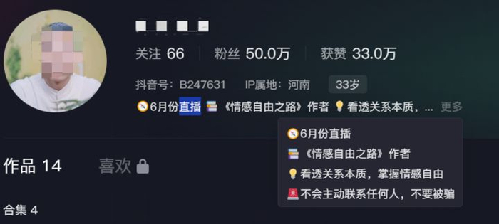 尽管相亲分析师看起来是个“新赛道”,但在业内人士看来,他们并没有脱离“情感主播”的范畴。也因此他们的变现方式也不外乎接广告、带货、视频付费以及情感咨询,“而且情感咨询肯定是大头。”