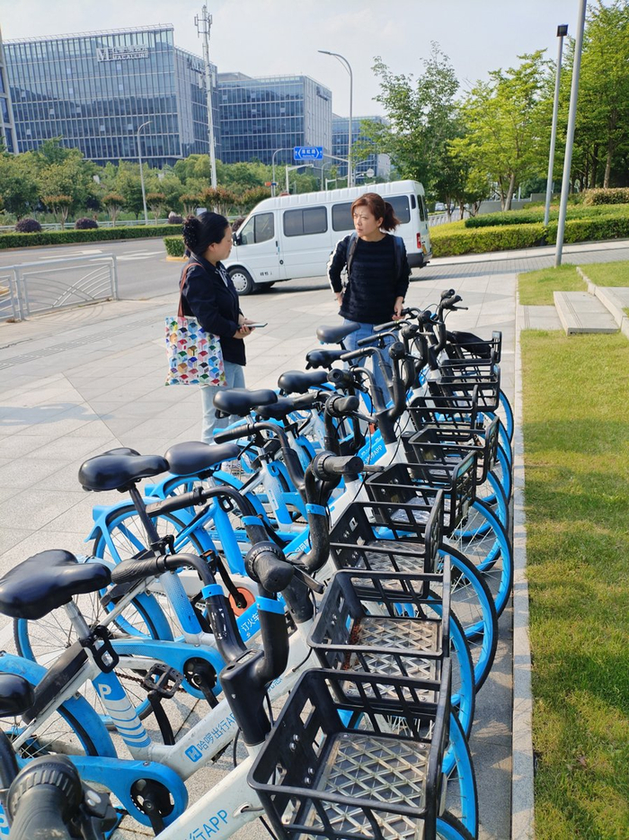 下午三点多,在虹桥商务区1路的申虹路淮虹路公交站,黄女士下车,看到路边停着一排共享单车,她立刻上前扫码。“离公司还有一两公里,走路太慢了,骑车回去只要几分钟。”黄女士告诉记者,她家住青浦区赵巷镇,每天上班都是地铁17号线+共享单车,从地铁口骑车到公司大约10分钟,“骑共享单车是最灵活方便的”。
