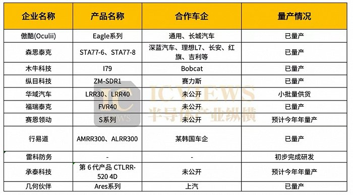 此外,还有新兴企业,诸如傲酷(Oculii)、森思泰克、雷科防务、木牛科技、承泰科技、纵目科技、几何伙伴、楚航科技、行易道、赛恩领动、华域汽车等。